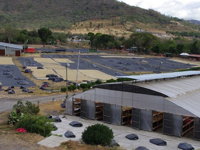 早朝から丁寧に収穫されたコーヒーの実を夕方に脱穀し、100%ミューシレージ(果肉と果皮の間の粘液質)が付着した状態で翌朝まで乾燥させて発酵を行った後に、マタガルパの標高670mにある加工所まで運ばれます。最初の2日間はミューシレージ(粘液質)を乾燥させるためにビニールパティオ(乾燥場)の上で予備乾燥が行われ、1日に3〜4回ほど撹拌をしながら水分値を50%ほどまで下げます。その後、室内の3段組みのアフリカンベッド(乾燥場)へ移動し、最上段で水分値が15%程度になるまで乾燥、その後2段目、3段目と移し替え10日〜12日かけて12%程度の理想的な水分値までゆっくりと本乾燥をさせています。 そうして幾重にも人の手間が加わって出来上がったエル・ススピロ パルプドナチュラルは、Suspiroの意味でもある”ため息”の出るような甘くフルーティな素晴らしい風味が作られています。